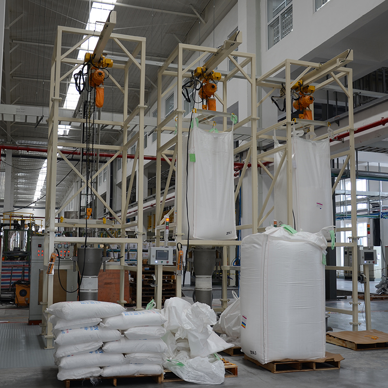 噸袋拆包機由鋼架、電動葫蘆、提升組件、卸料組件、推揉組件等組成,用于噸袋物料的解包和投料。