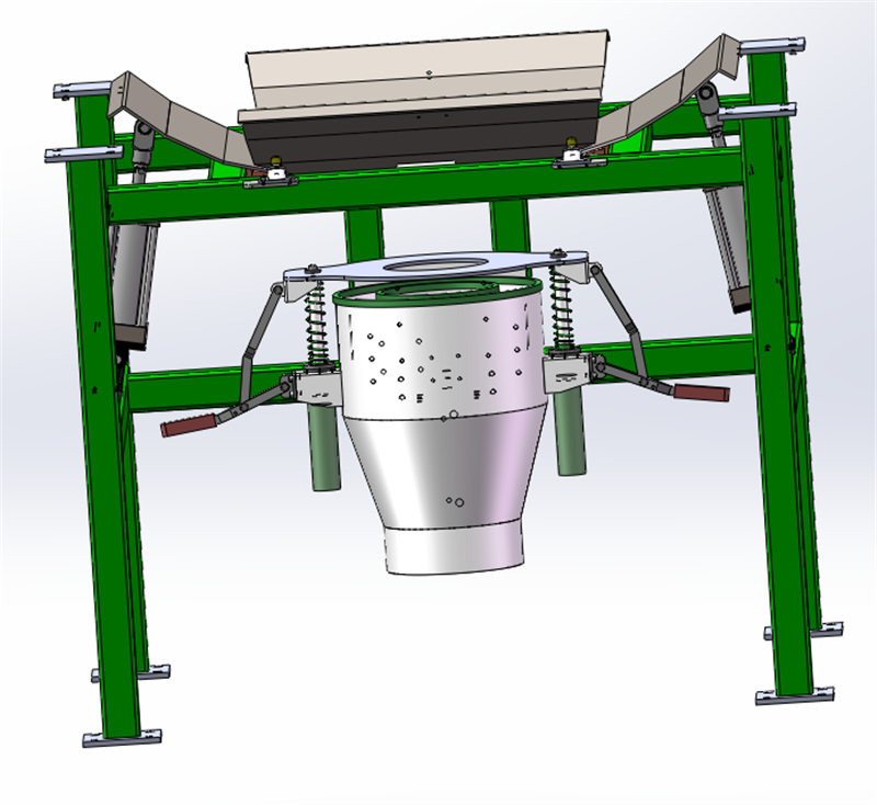 噸袋拆包機,噸袋卸料機將噸袋包裝物料提升到進料口,人工將包裝袋下料口拆開后,打開流量控制閥和帶附帶的振動下料裝置促使包裝袋內的粉粒狀物料通過自重落到下方料斗中。
