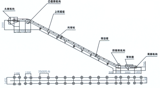 2,運用輸送帶的連續或間歇運動來輸送100KG以下的物品或粉狀、顆狀物品,其運行高速、平穩,噪音低,并可以上下坡傳送。