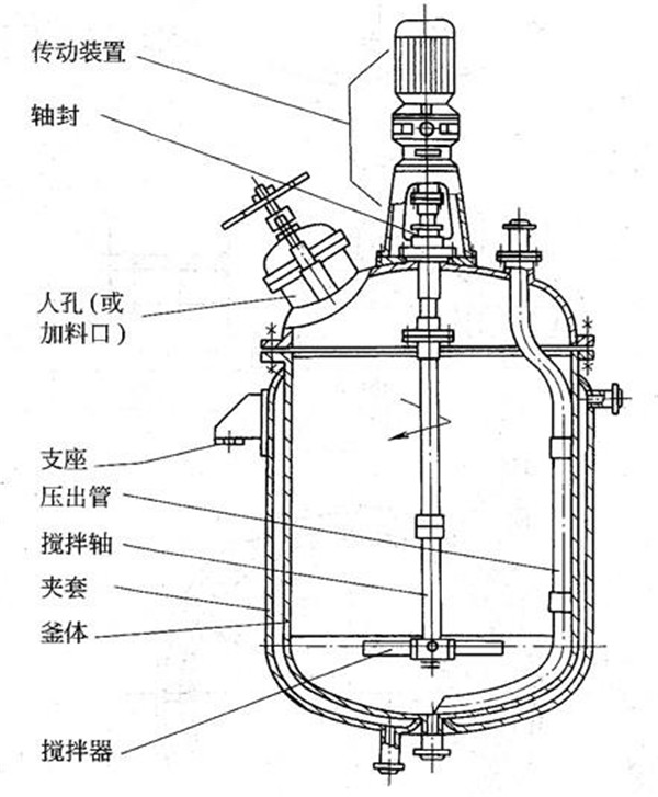 反應釜是綜合反應容器,根據反應條件對反應釜結構功能及配置附件的設計。從開始的進料-反應-出料均能夠以較高的自動化程度完成預先設定好的反應步驟,對反應過程中的溫度、壓力、力學控制(攪拌、鼓風等)、反應物/產物濃度等重要參數進行嚴格的調控。其結構一般由釜體、傳動裝置、攪拌裝置、加熱裝置、冷卻裝置、密封裝置組成。相應配套的輔助設備:分餾柱、冷凝器、分水器、收集罐、過濾器等。
